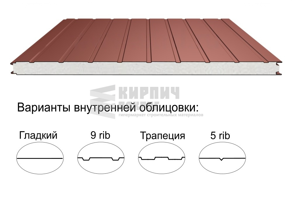 В интернет-магазине "Кирпич Вокруг" Вы можете купить Стеновая трёхслойная сэндвич-панель 9 rib 50мм 1190мм с видимым креплением пенополистирол Полиэстер Доборник в Верхней Пышме, а наши специалисты готовы вам помочь с выбором по адресу: , или оказать консультацию по телефону: .